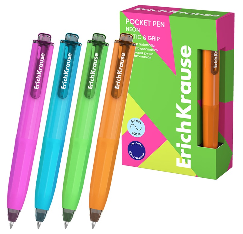 Automatinis tušinukas POCKET PEN NEON, ErichKrause, 0.5mm, mėlynos sp.