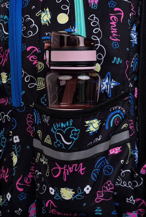 • su 2-jomis kišenėlėmis šonuose vandens buteliukui, gertuvei, skėčiui ar kt.;