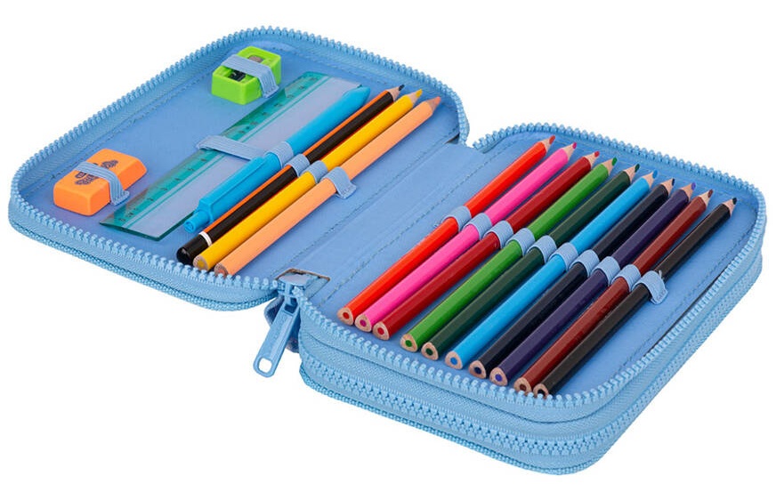 • pirmame skyriuje: drožtukas, trintukas, liniuotė, tušinukas, grafitinis pieštukas, 12 spalvotų pieštukų;