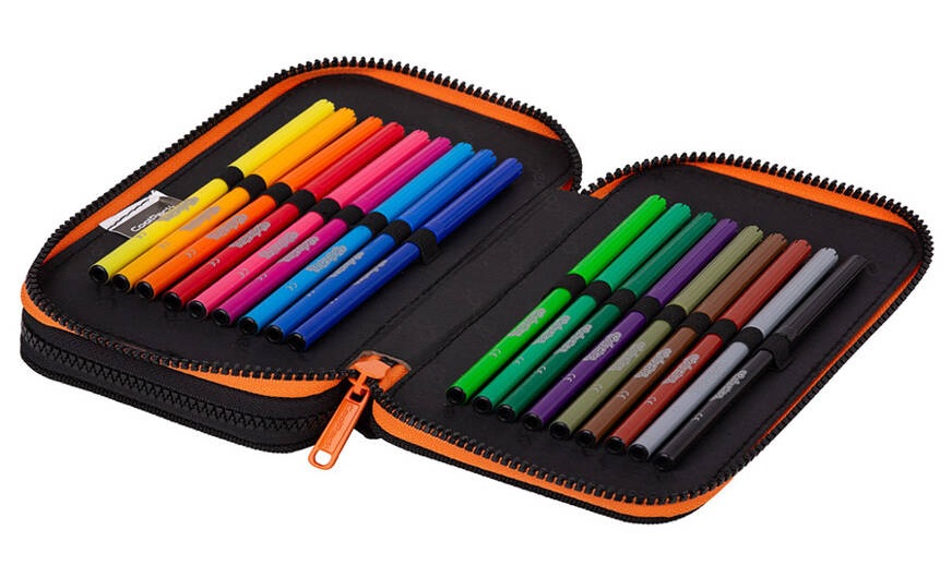 • pirmame skyriuje: drožtukas, trintukas, liniuotė, tušinukas, grafitinis pieštukas, 12 spalvotų pieštukų;