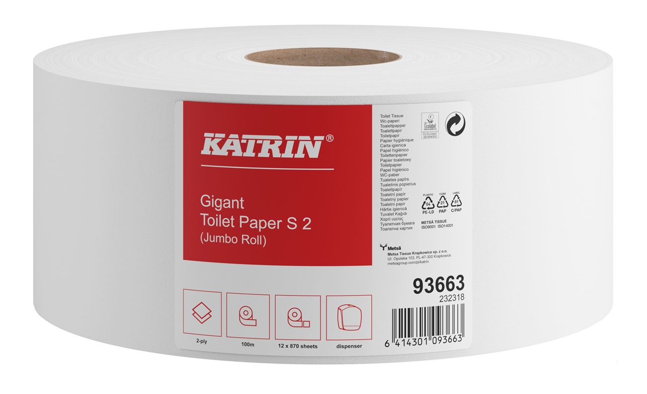 Tualetinis popierius KATRIN Jumbo S2, rulone, 100m, 2 sl., celiuliozė