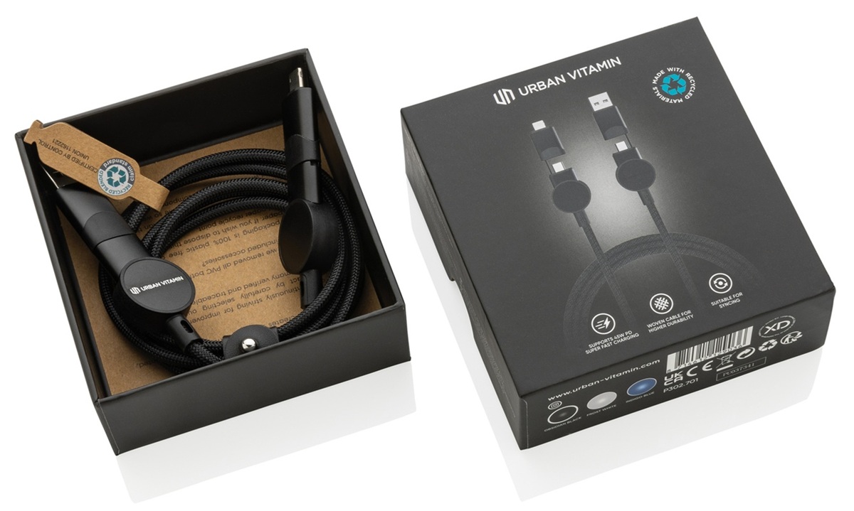 Greito įkrovimo laidas OAKLAND, Urban Vitamin, 6-in-1, 45W, 120 cm, juodos sp.