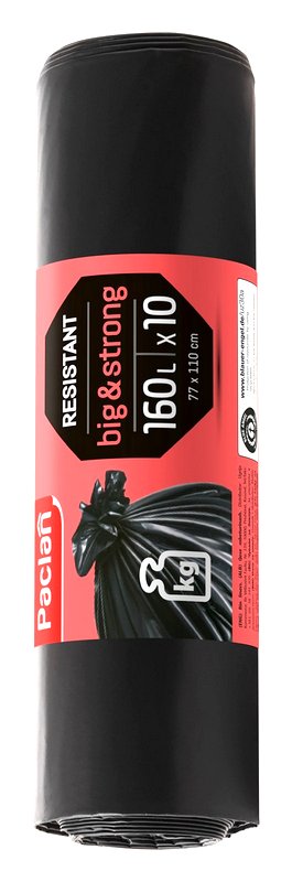 Šiukšlių maišai PACLAN, 160 litrų, 10 vnt., 50 mkr, LDPE plastikas, juodos sp.