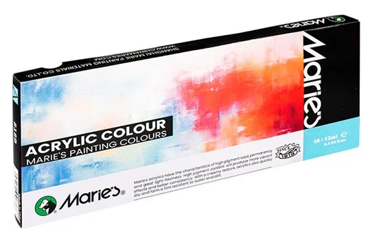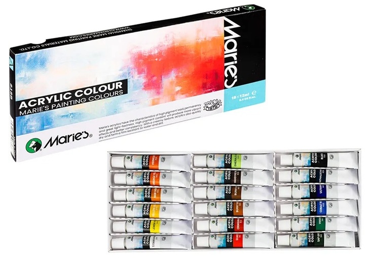 Akrilinių dažų rinkinys MARIES, 18 sp. po 12 ml