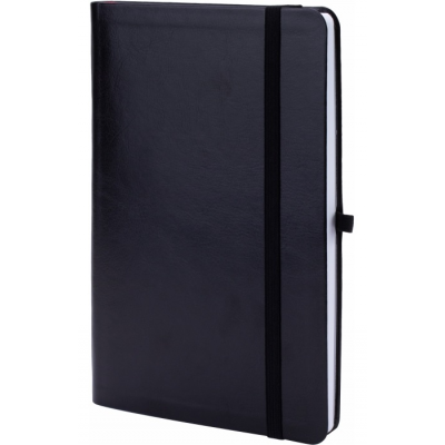 Užrašų knyga NEBRASKA, Optima, A5, 128 lapai, 70gsm, linija, su skirtuku, vokeliu ir gumele, juodos sp. dirbt. odos viršelis