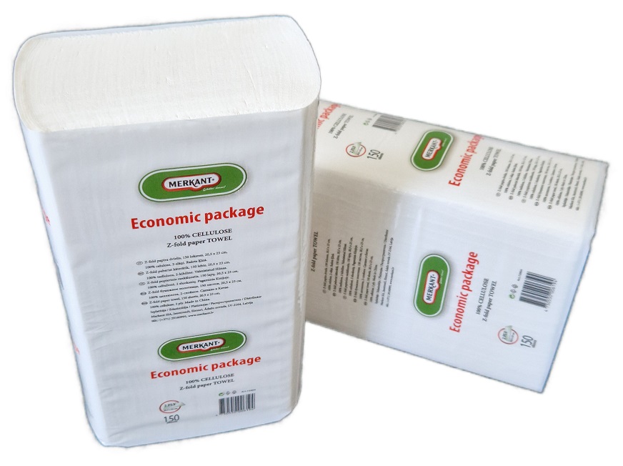 • Lapiniai popieriniai rankšluosčiai Z-fold, Merkant, 150 lapelių, 2 sl., celiuliozė