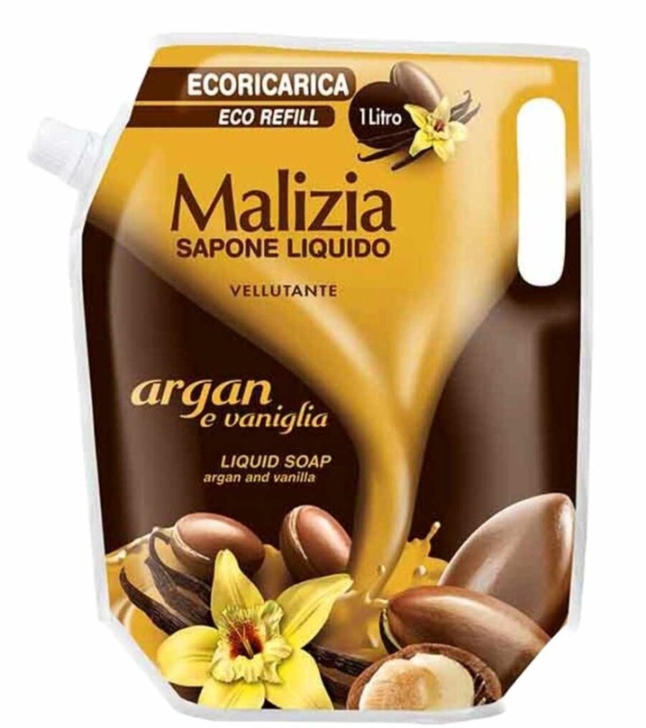 Skystas muilas MALIZIA Argan & Vanilla, 1000 ml, PAPILDAS
