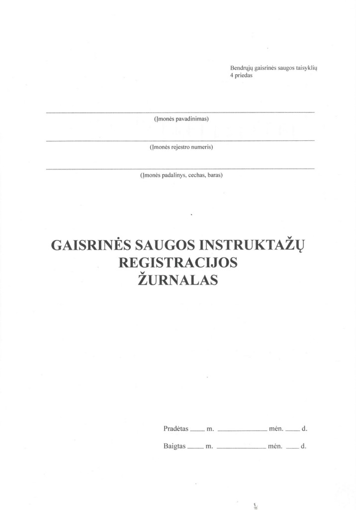Gaisrinės saugos instruktažų registracijos žurnalas, A4, 12 lapų