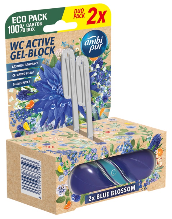 WC valiklis-gaiviklis AMBI PUR Blue Blossom, 2x45 g