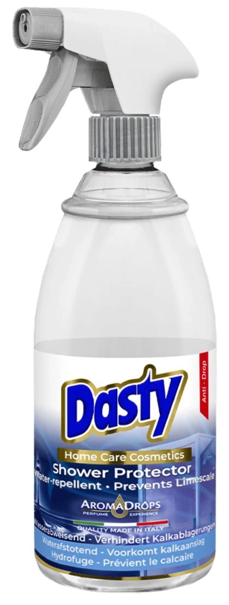 NAUDOJIMAS: ilgalaikė apsauga – nuvalykite paviršių su kalkių nuosėdų ar vonios valikliu ir tuomet jį gerai nusausinkite mikropluošto šluoste. Ant nuvalyto paviršiaus užpurškite DASTY Shower Protector priemonės ir poliruokite mikropluošto šluoste kol paviršius liks visiškai sausas. Nenuskalaukite. Pakartokite kas 2-4 savaites. Palaikomasis naudojimas – užpurškite nedidelį kiekį priemonės ant sauso, švaraus paviršiaus ir nuskalaukite vandeniu. Naudokite reguliariai, kad apsauga išliktų ilgalaikė.