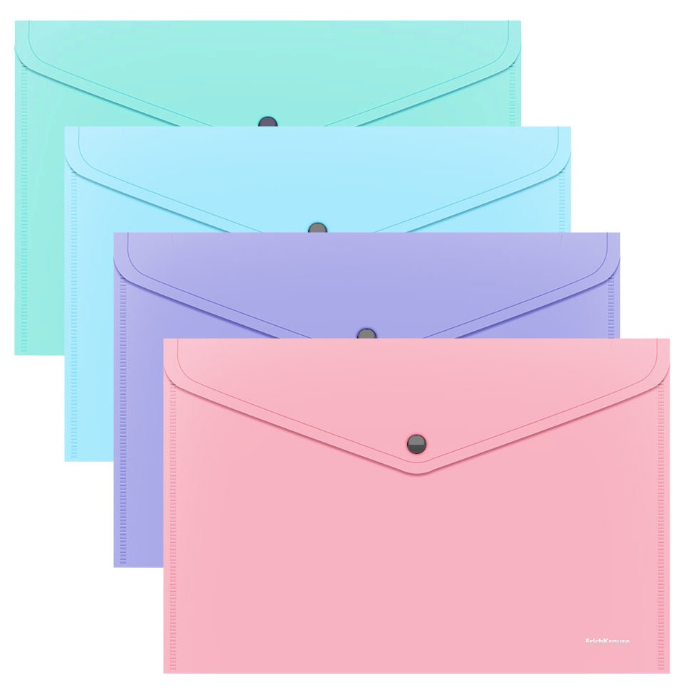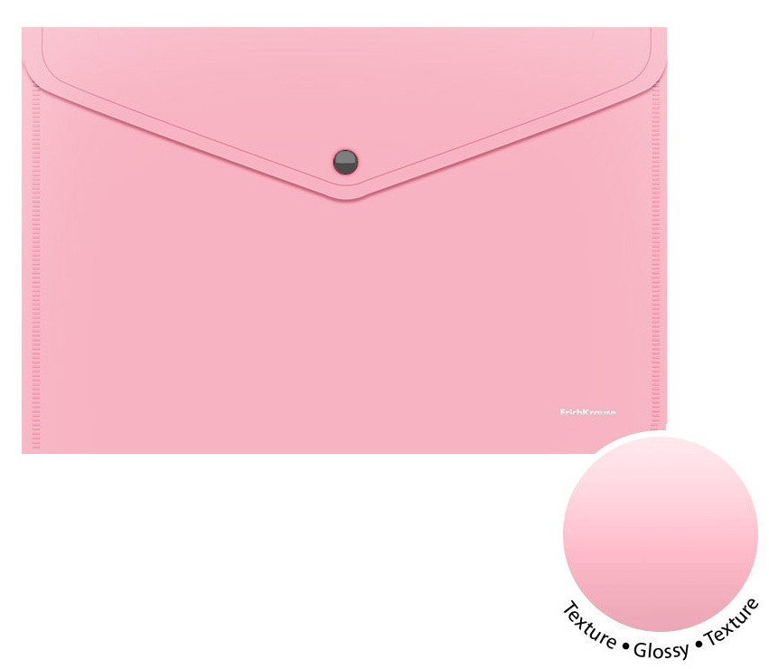 Plastikinis vokas su spaustuku GLOSSY PASTEL, ErichKrause, A4, 180 mkr, nepermatomas, 3 sp.
