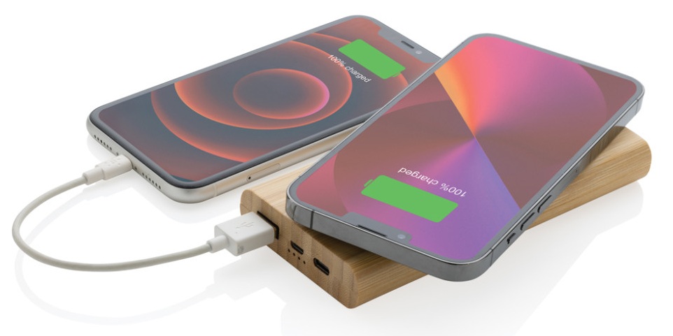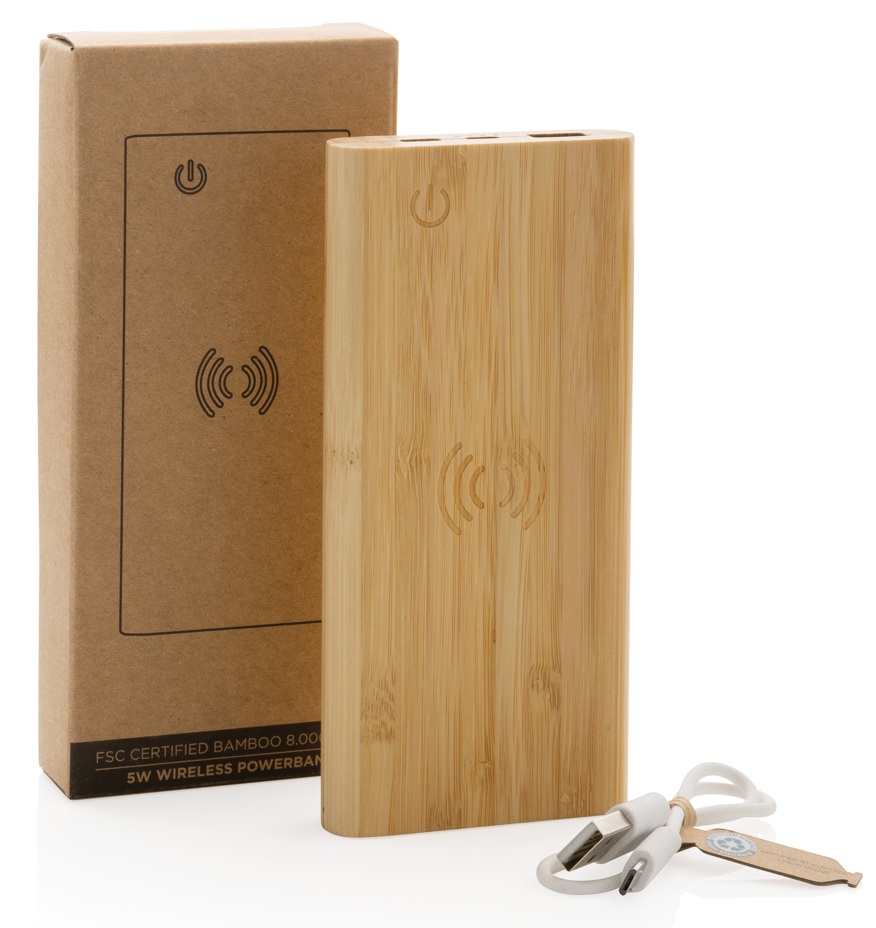 Belaidė išorinė baterija XD COLLECTION, 8000 mAh, 5W, bambuko medžio korpusas