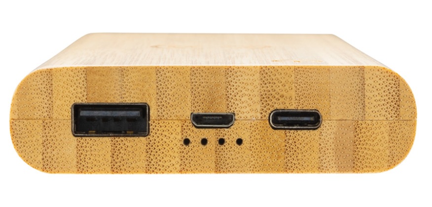 • išorinės baterijos korpusas pagamintas iš 100% FSC sertifikuotos bambuko medienos;