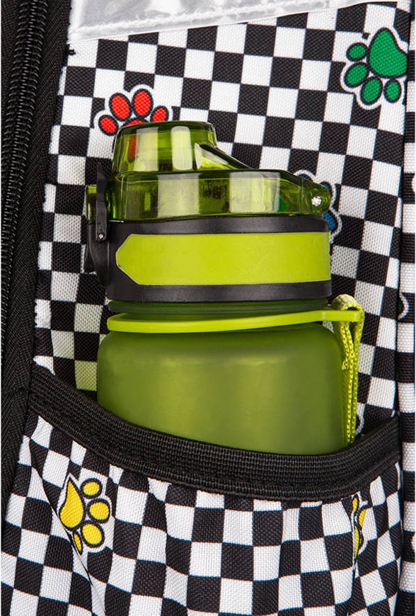 • su 2-jomis kišenėlėmis šonuose vndens buteliukui, gertuvei, skėčiui ar kt.;