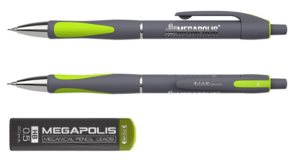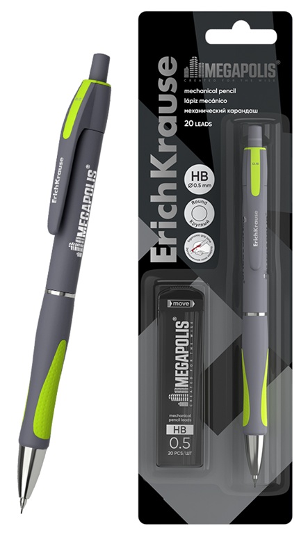 Automatinis pieštukas MEGAPOLIS CONCEPT, ErichKrause, 0.5 mm, HB, su 20 papildomų grafitų, blisteryje