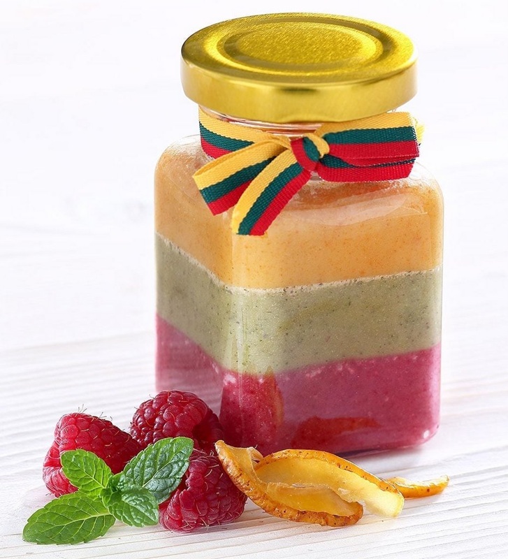 MEDAUS TRISPALVĖ - į stiklinį indelį supilti trys medaus skanėstai: geltona spalva – medus su šaltalankiais; žalia spalva – medus su pipirmėte; raudona spalva – medus su avietėmis. Šie trys nuostabūs skoniai sukuria mūsų šalies tobulą trispalvę. Skanaukite gryną, su skiltele šviežio sūrio, gabalėliu agurko ar pagardinkite arbatą.