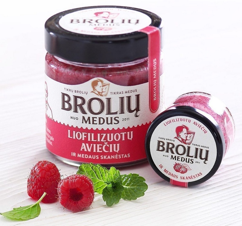 • 200 gramų medaus su liofilizuotomis avietėmis;