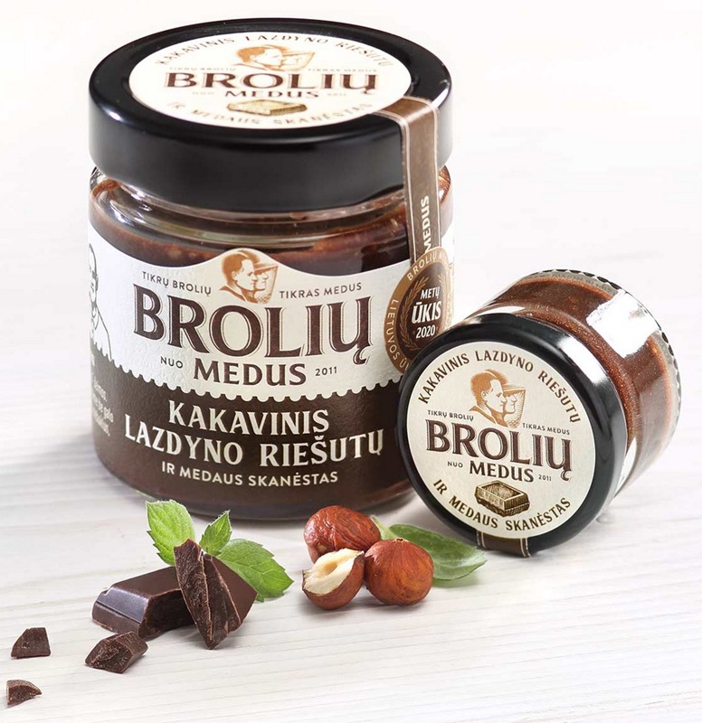 Medaus skanėstų rinkinys BROLIŲ MEDUS, 2 x 200 g (avietės; kakava ir lazdynų riešutai)
