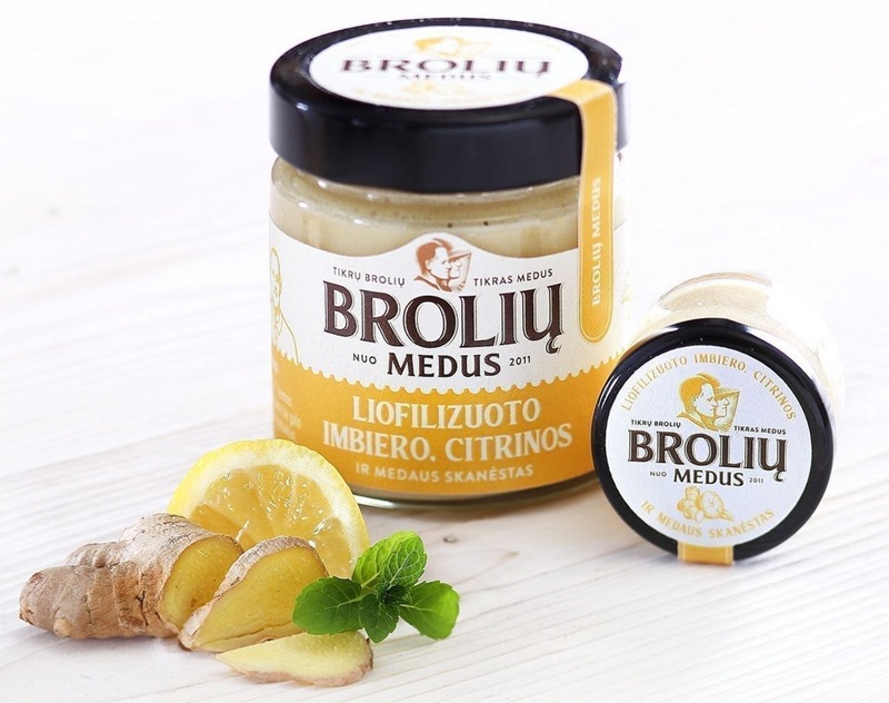 • 200 gramų medaus su liofilizuotomis citrinomis ir imbieru;